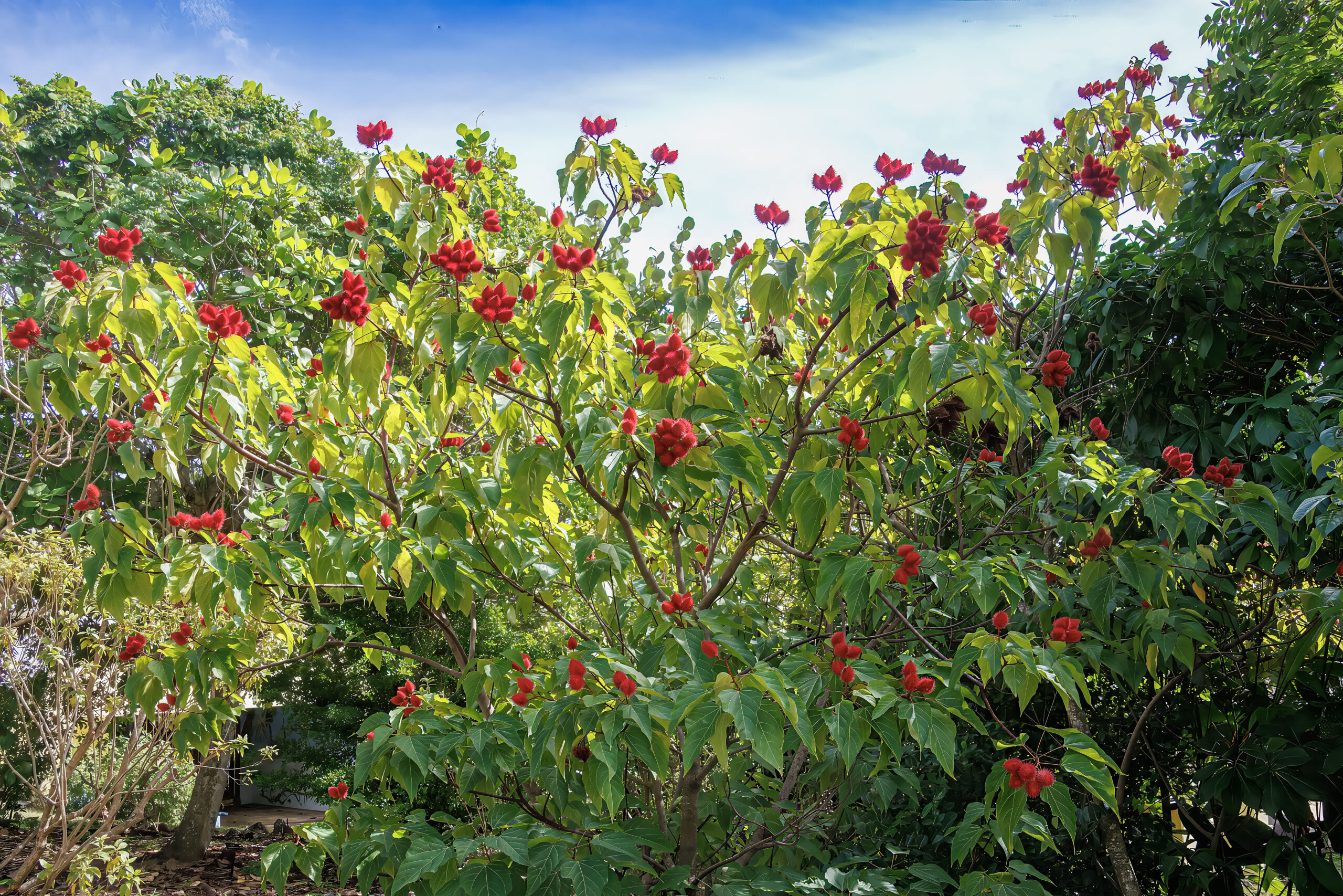Achiote is evergreen to semi-deciduous, depending on rainfall and site conditions.