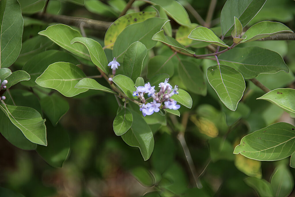 Vitex trifolia often grows near coastal habitats, roadsides, and disturbed areas; fast-growing and salt-tolerant