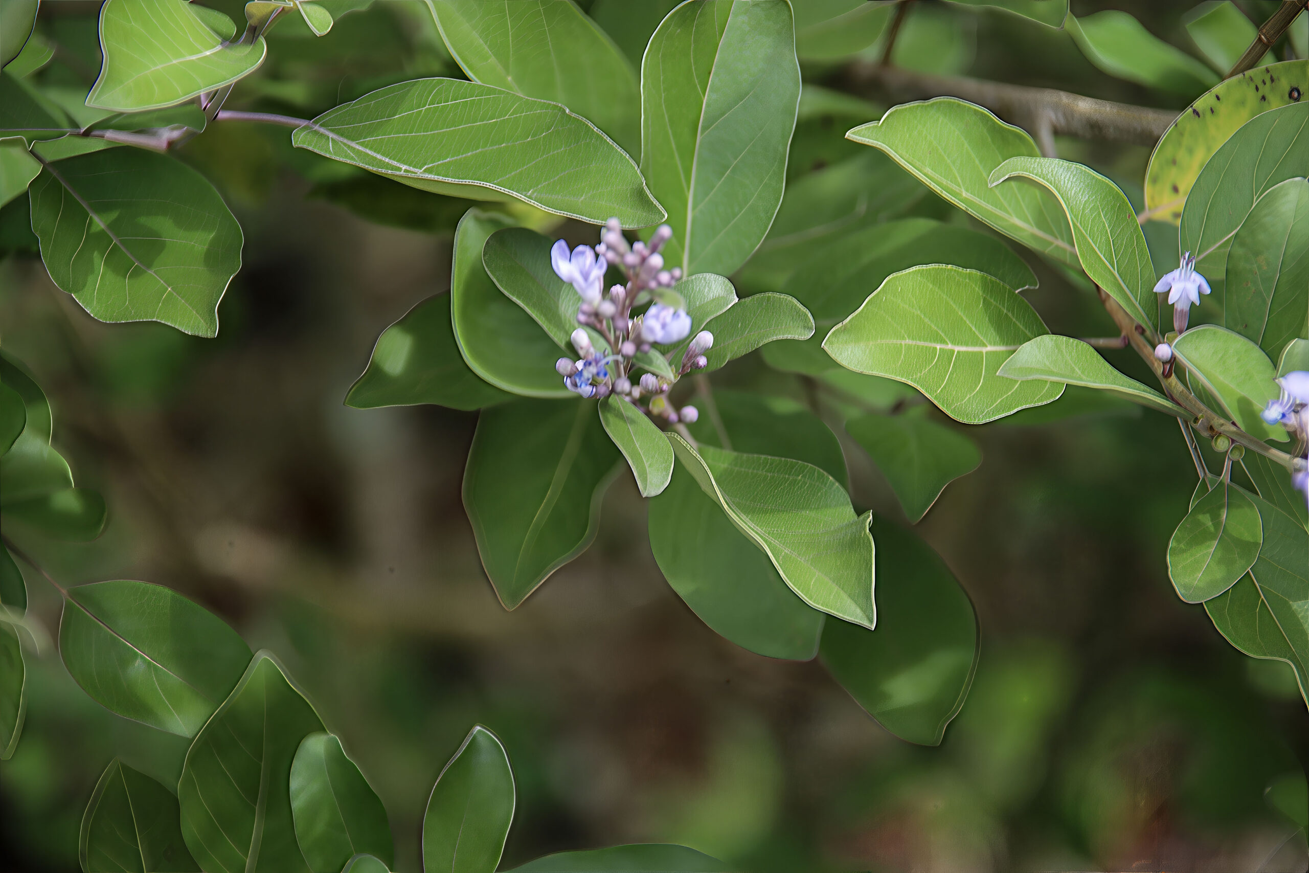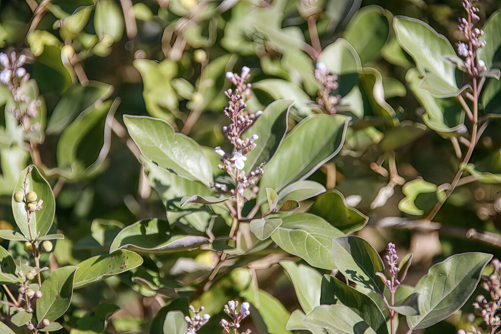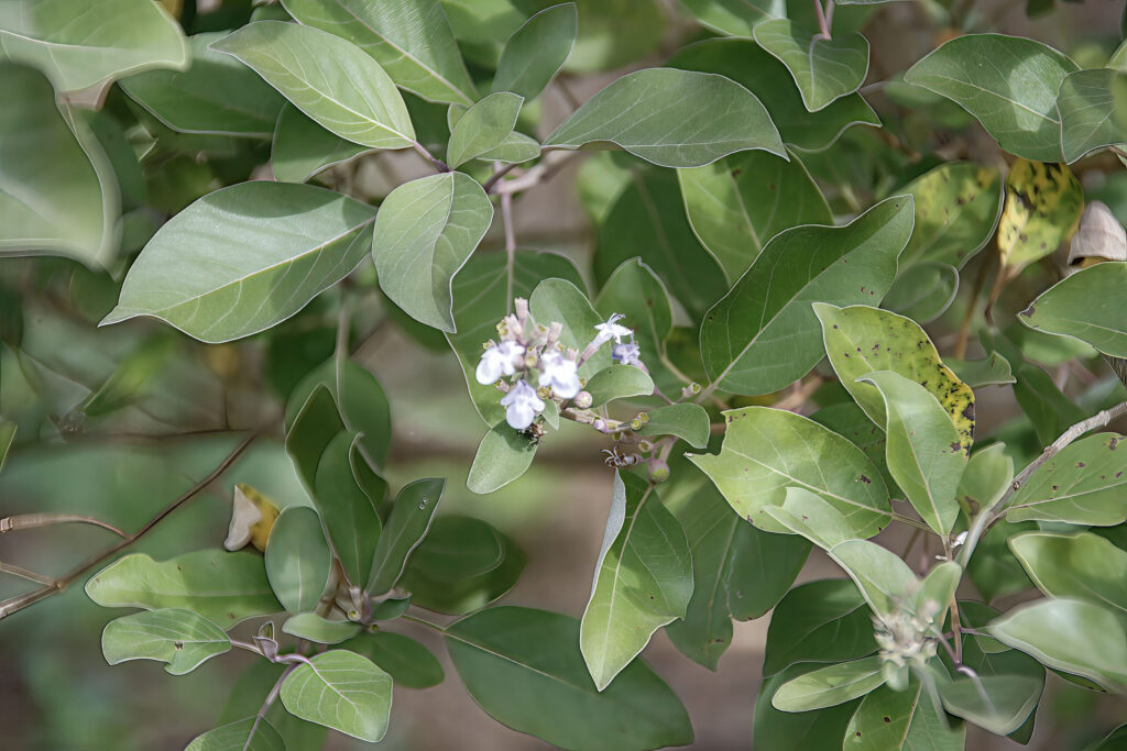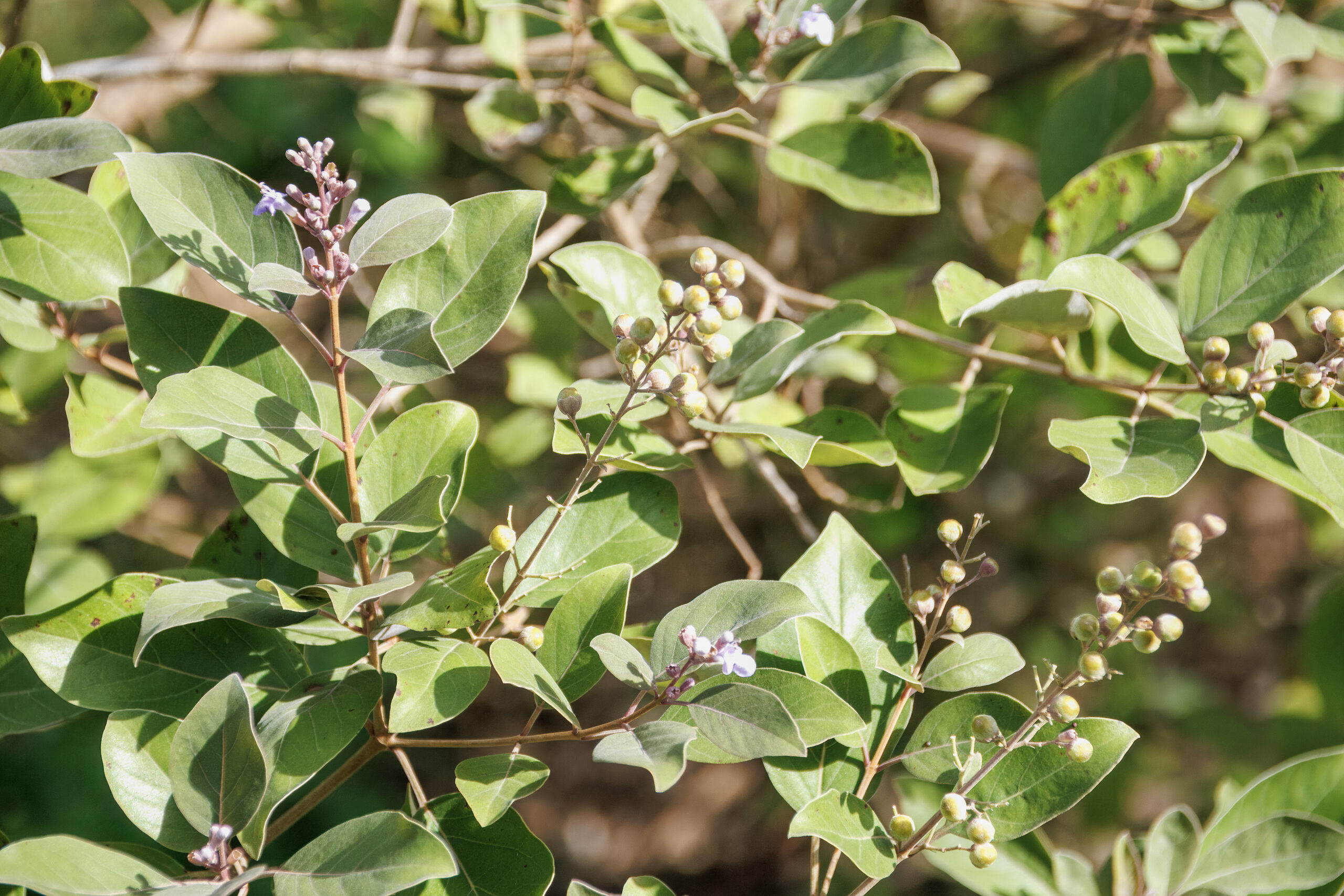 Vitex trifolia often grows near coastal habitats, roadsides, and disturbed areas; fast-growing and salt-tolerant