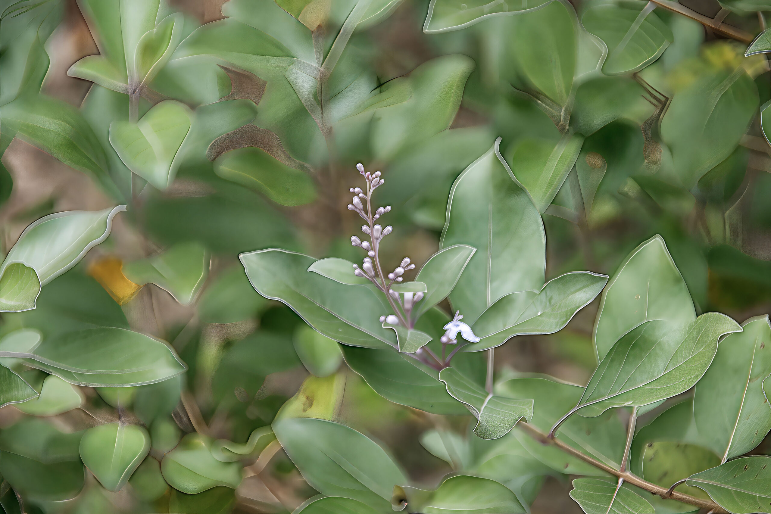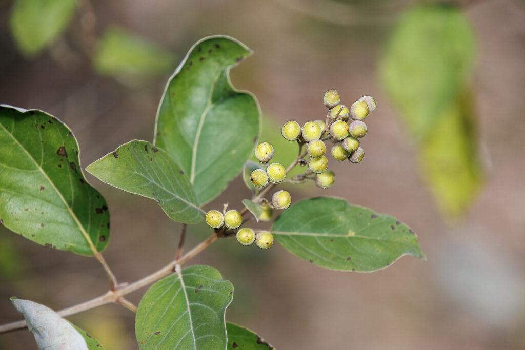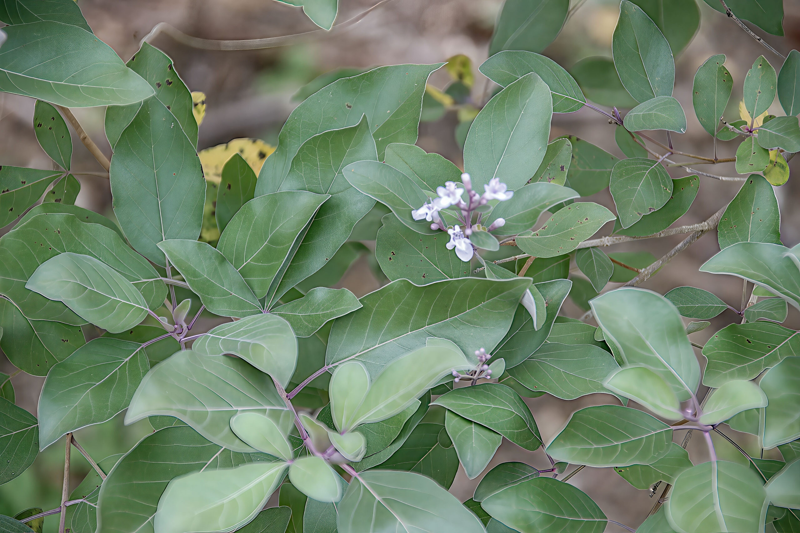 Vitex trifolia often grows near coastal habitats, roadsides, and disturbed areas; fast-growing and salt-tolerant