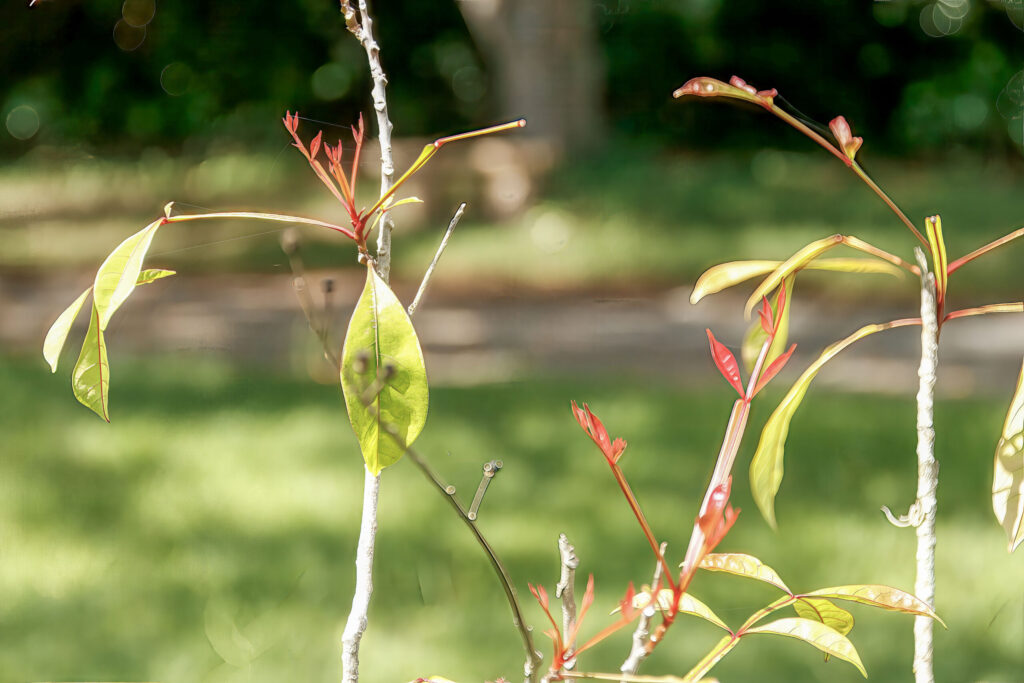- Young flush and older leaves for contrast