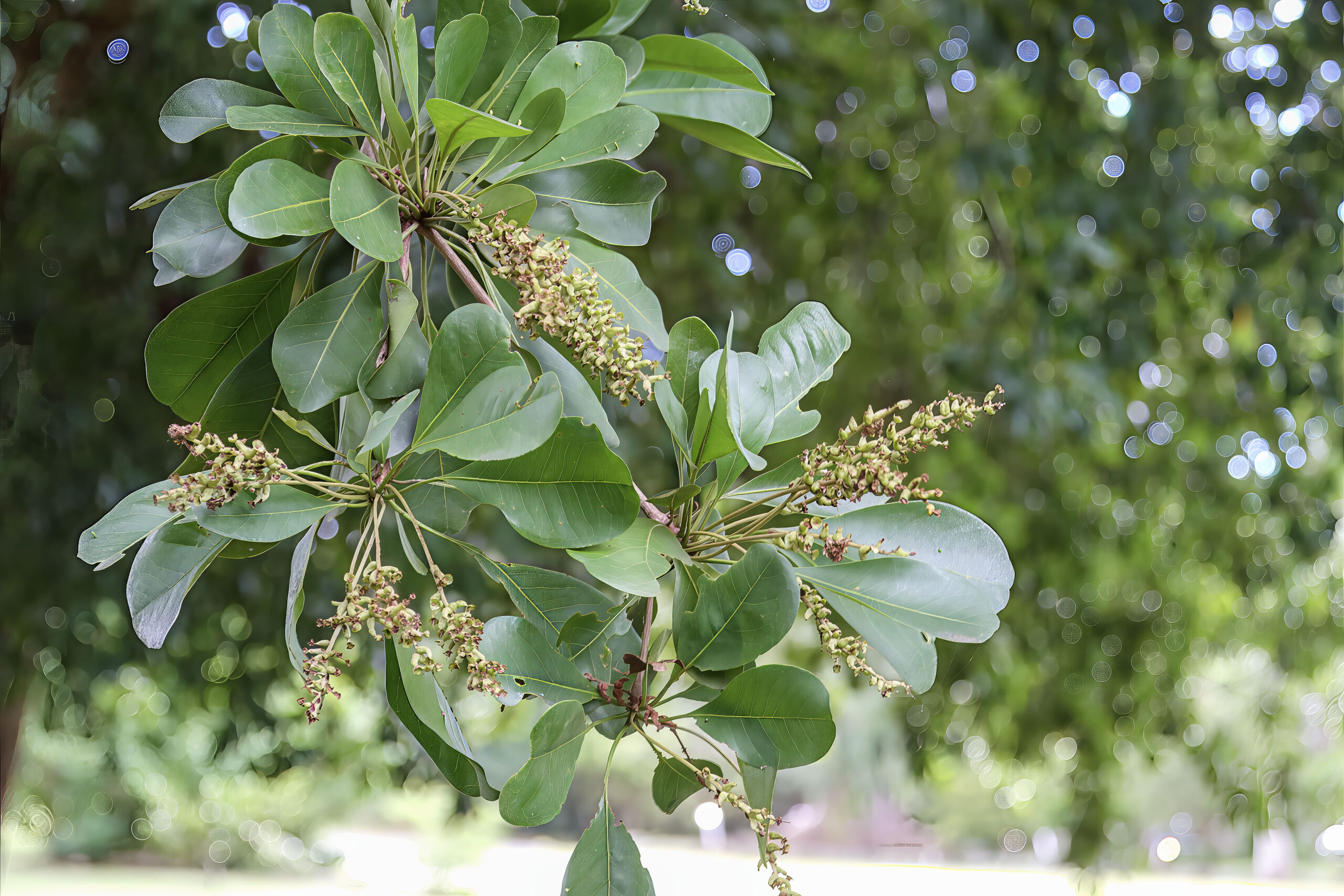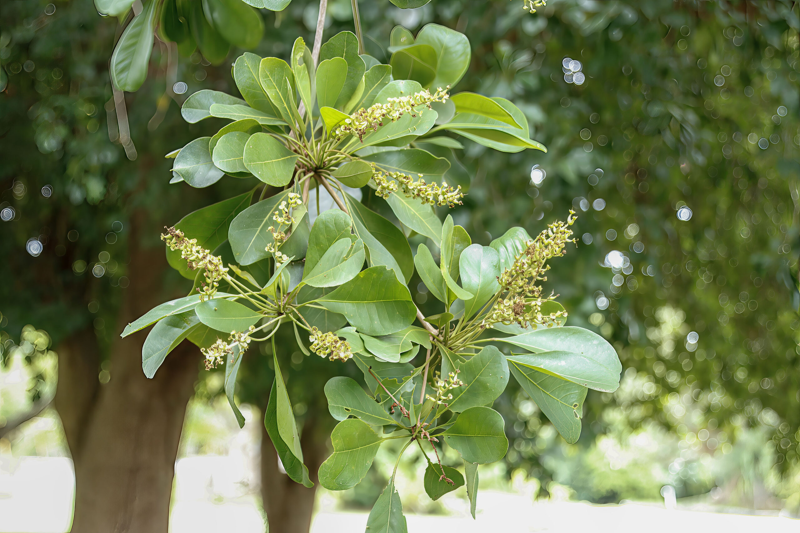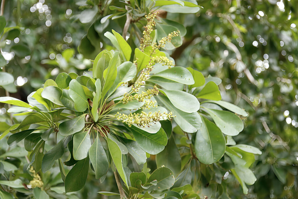 - Oct–Dec: Dense evergreen canopy, occasional sporadic flowering