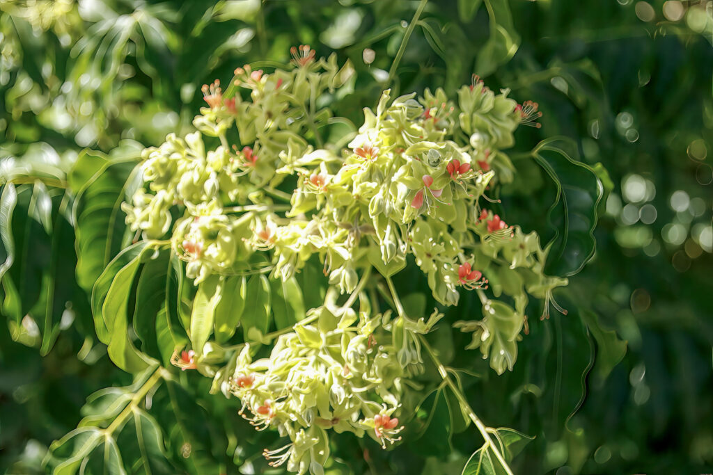 • Inflorescence: Small, pale greenish-yellow to cream flowers in panicles or axillary clusters
