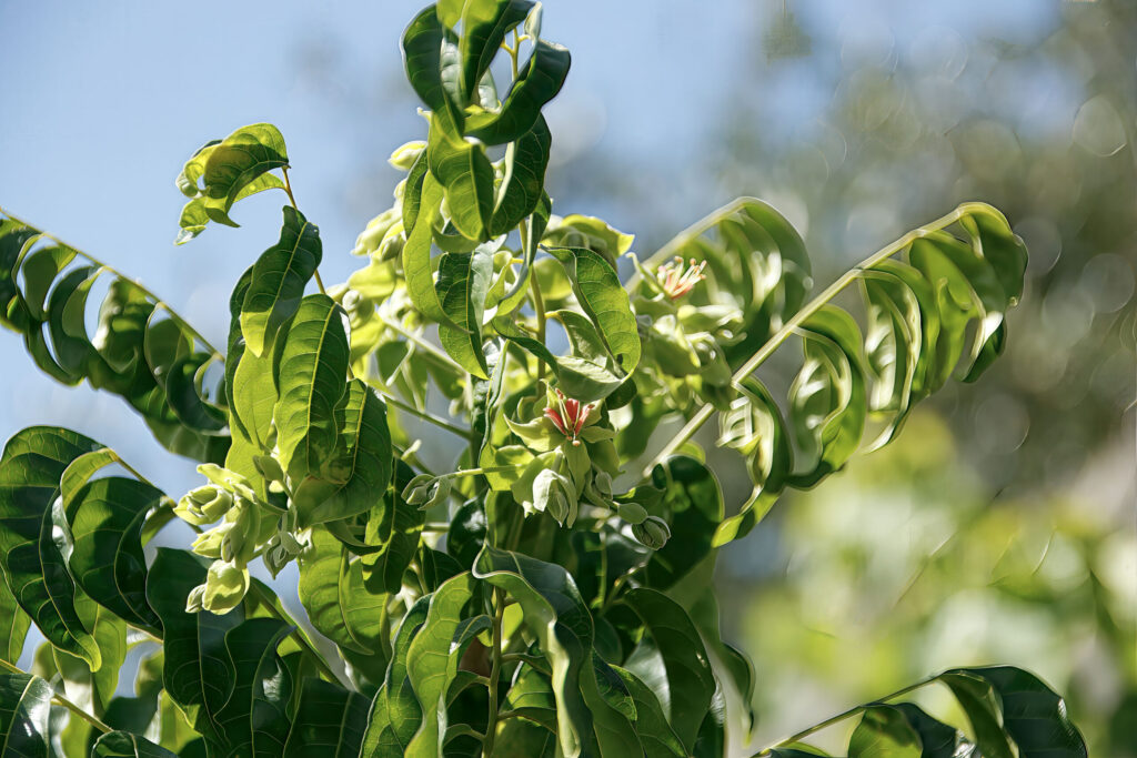 Majidea zanguebarica is often planted ornamentally for its unusual and colorful fruit display