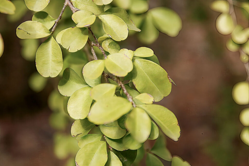 - Leaves: Simple, alternate, obovate to elliptic, leathery, and glossy green with slightly lighter undersides. New leaves may be reddish.