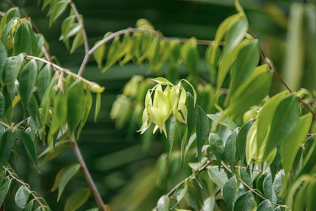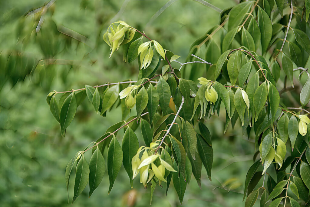 - Leaves: Opposite, leathery, glossy green, ovate to elliptic with a pleasant spicy or resinous scent when crushed.