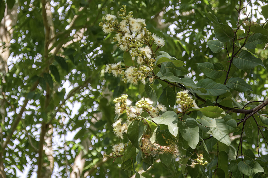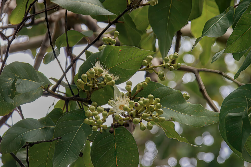 • Fruit Formation: After flowering, the tree’s distinctive woody capsules begin to develop, changing color from green to brown as they mature