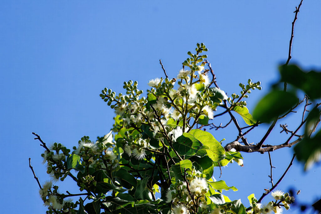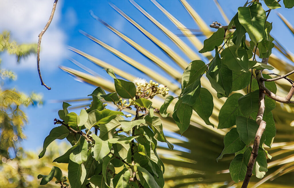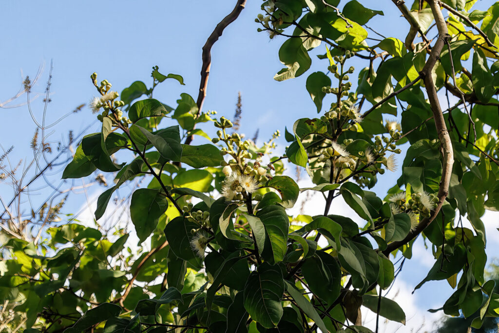 • Flower Visibility: The creamy white or yellow flowers are showy and fragrant, often attracting pollinators like bees, birds, and bats