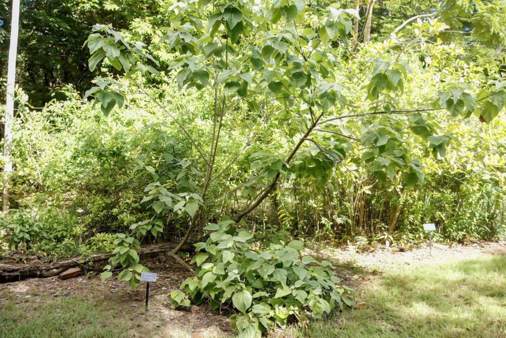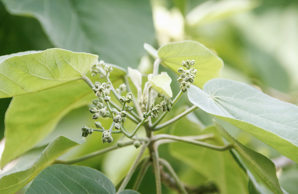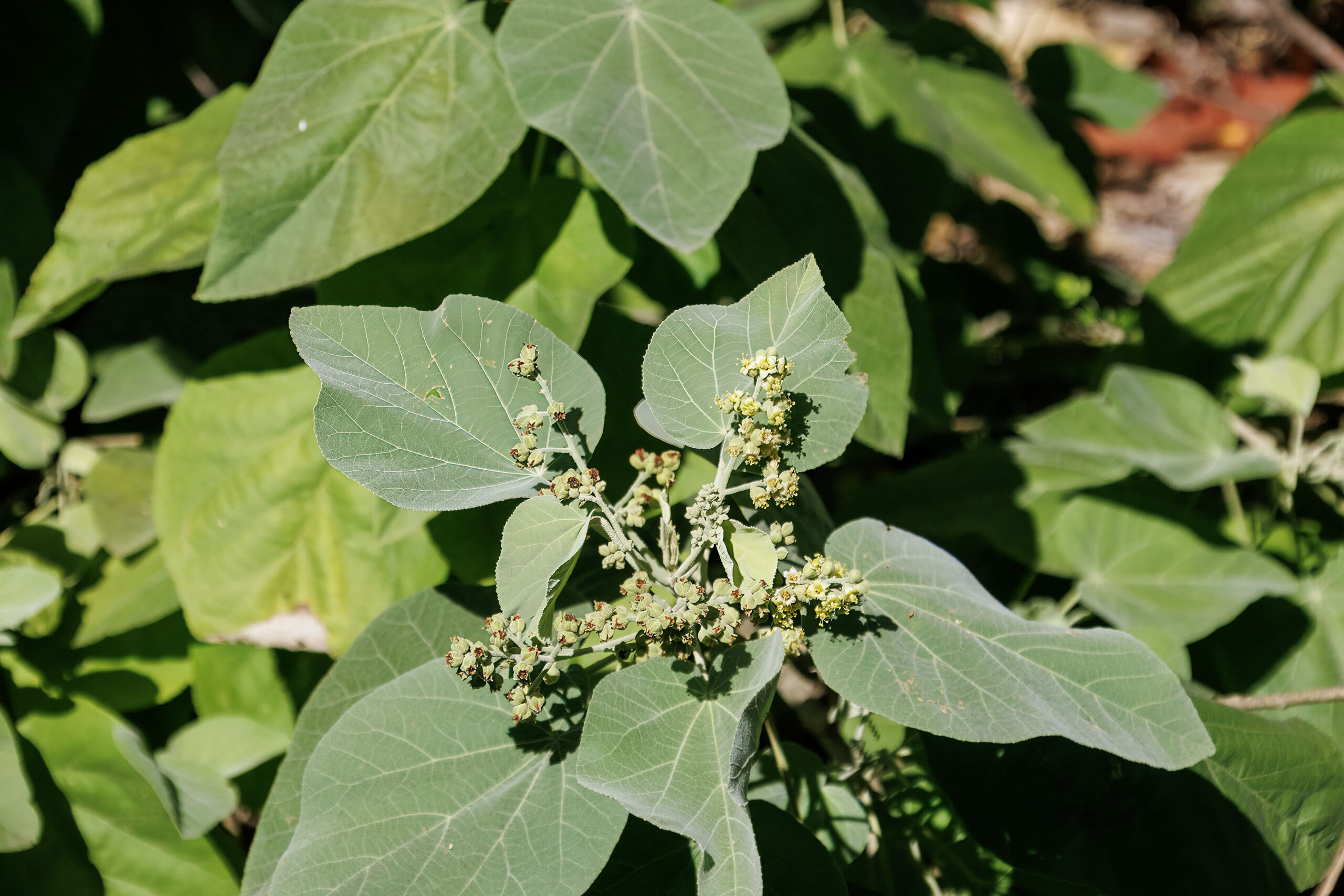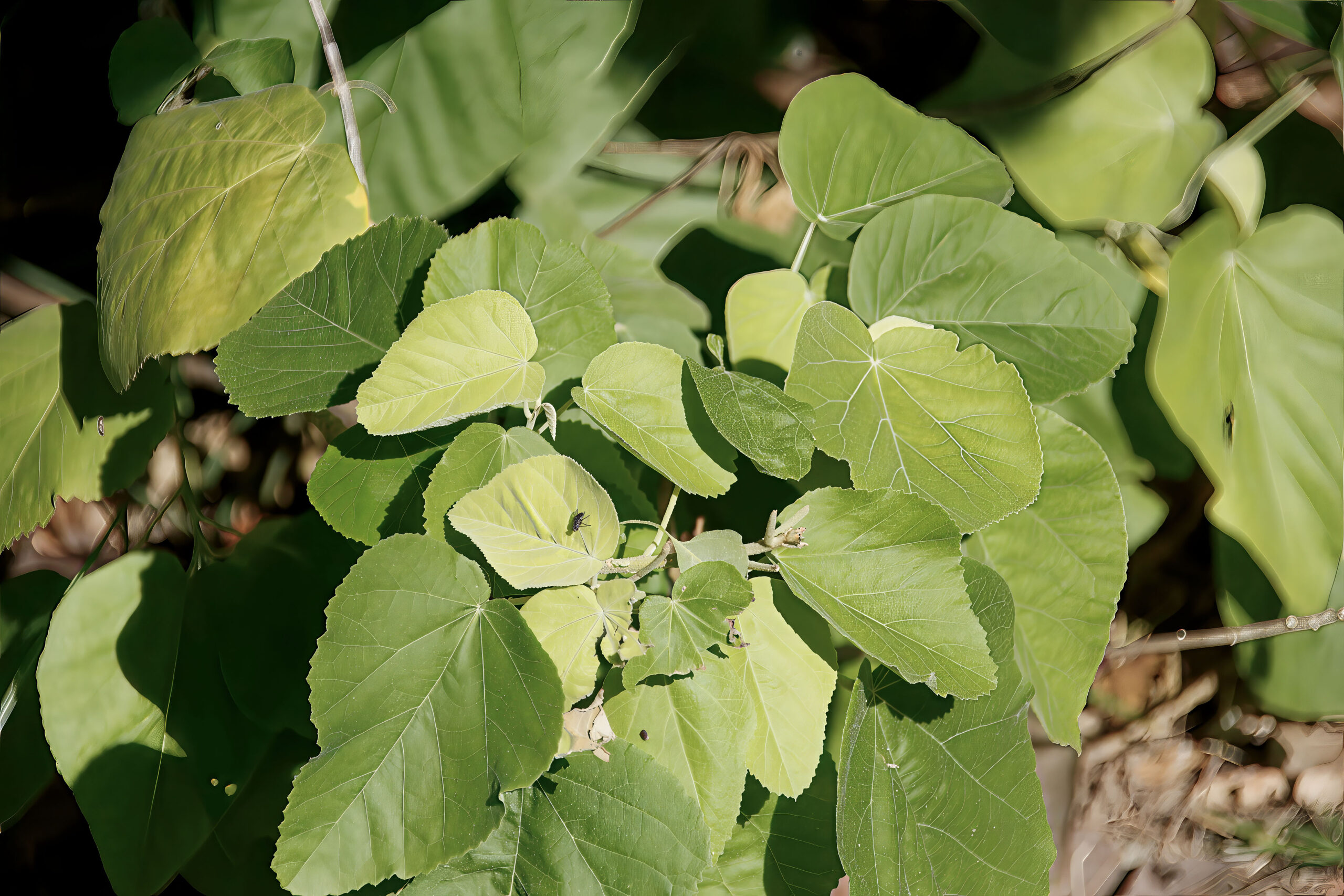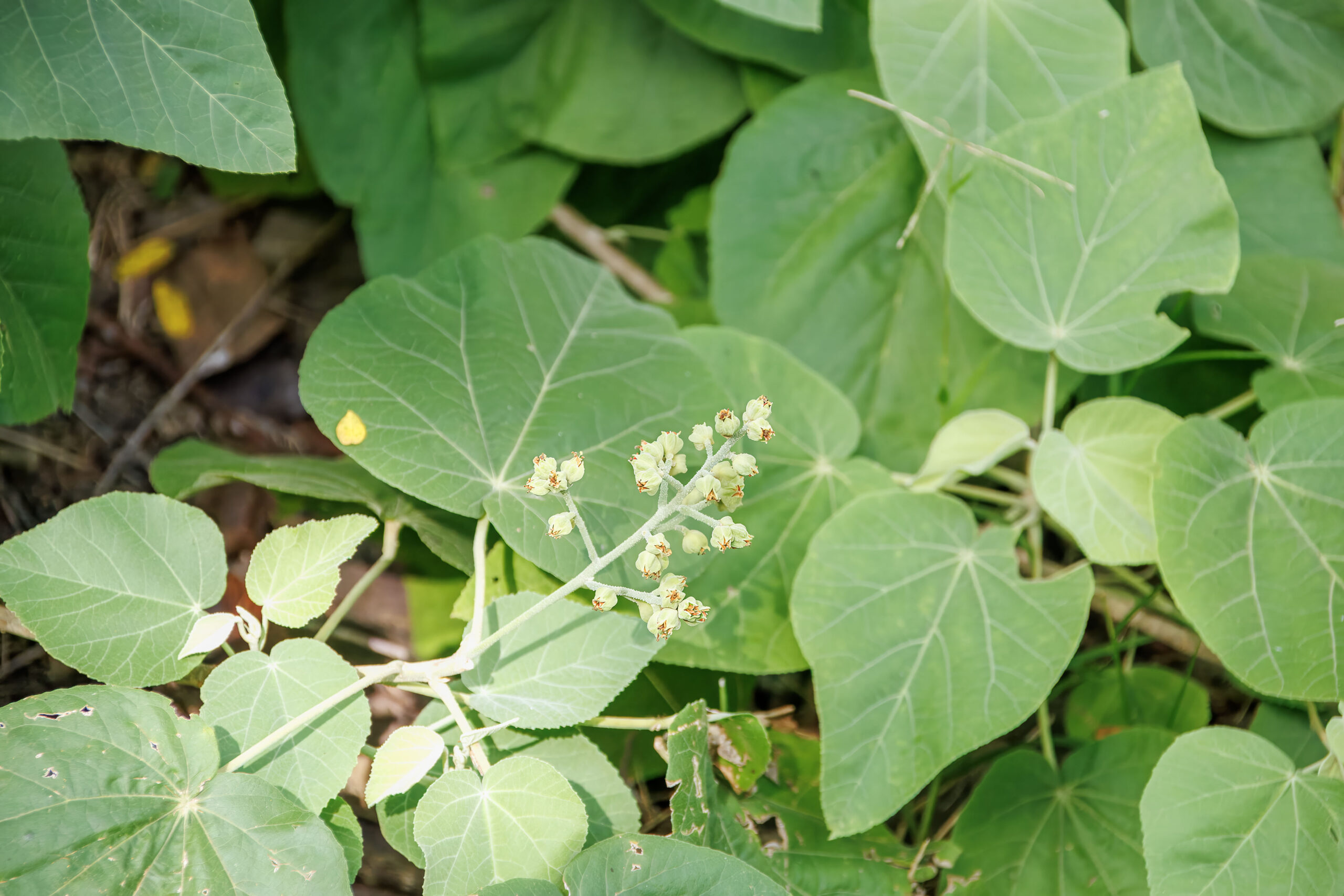 • Leaves: Large, heart-shaped, and deeply lobed with a velvety texture.