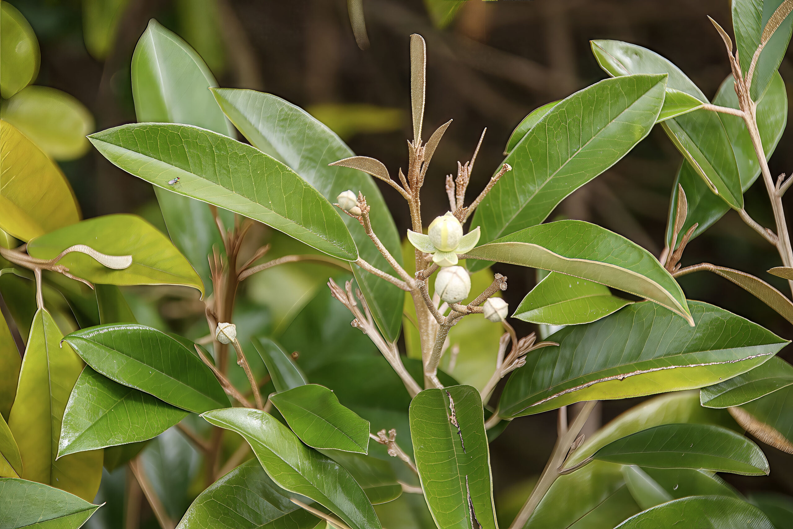 - Leaf Type: Simple, alternate, oblong to elliptic, entire margins