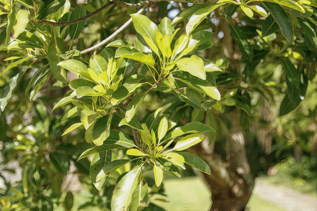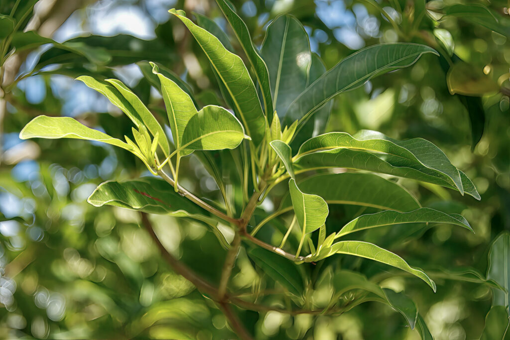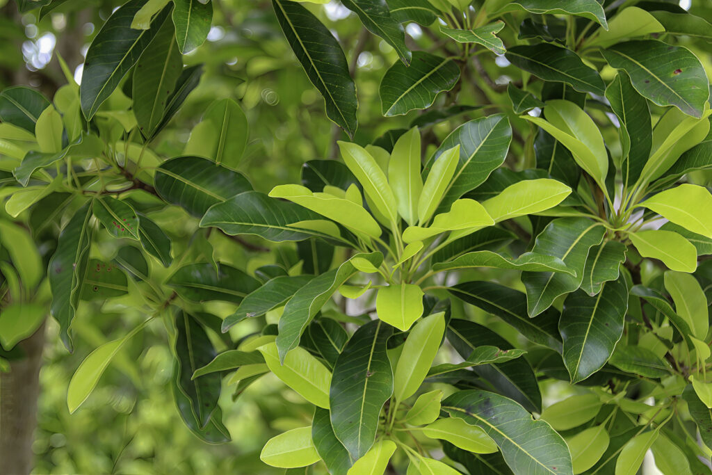 - Young Leaves: Emerge coppery-red to pink and mature to glossy green