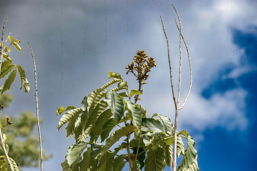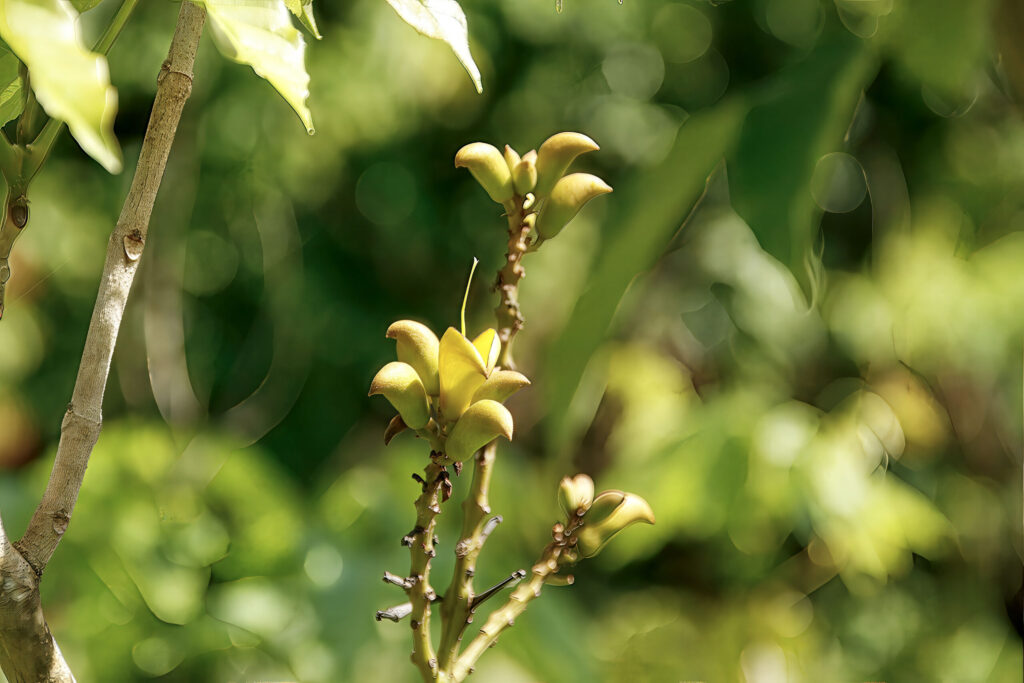 Observe leaf flush → flowering → fruiting → pod split as a useful phenological cycle