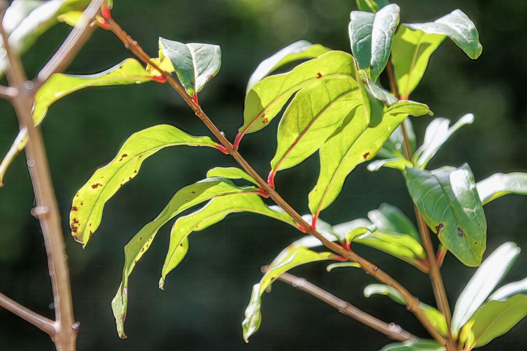 - Leaves: The leaves are opposite, elongated, and lanceolate, with a glossy green appearance. They are usually around 2-5 cm (1-2 inches) long.