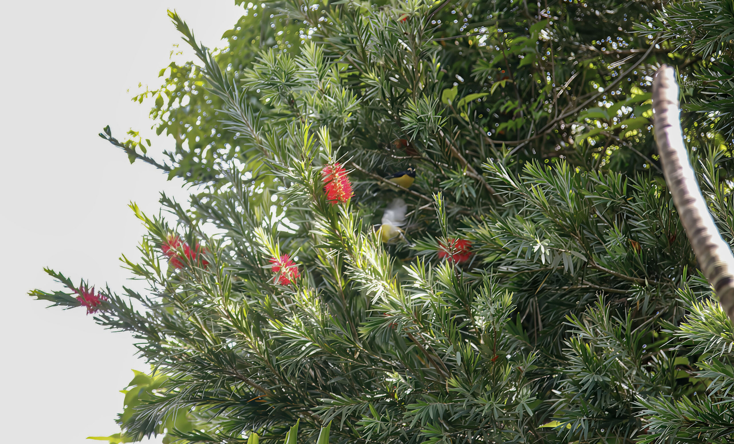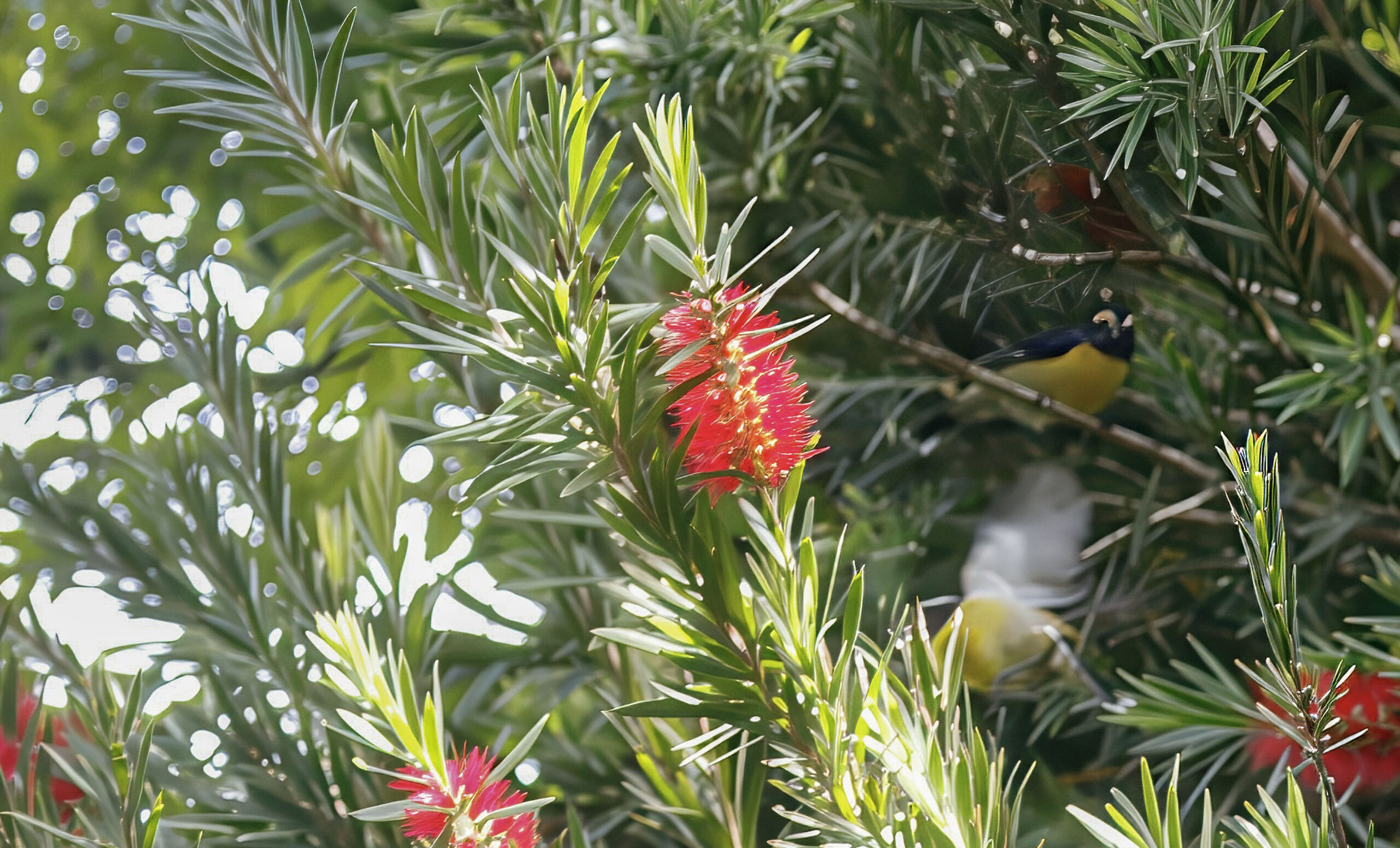 - Phenological Indicator: Vivid red bottlebrush flower spikes at branch ends, often accompanied by new leaf flush