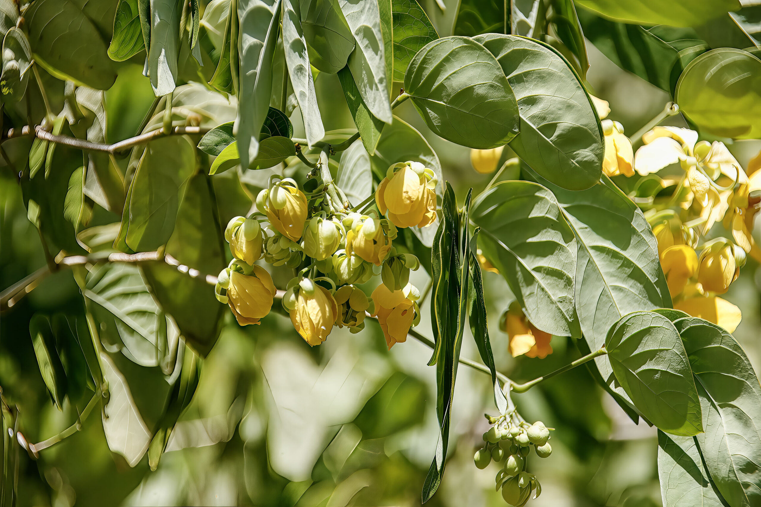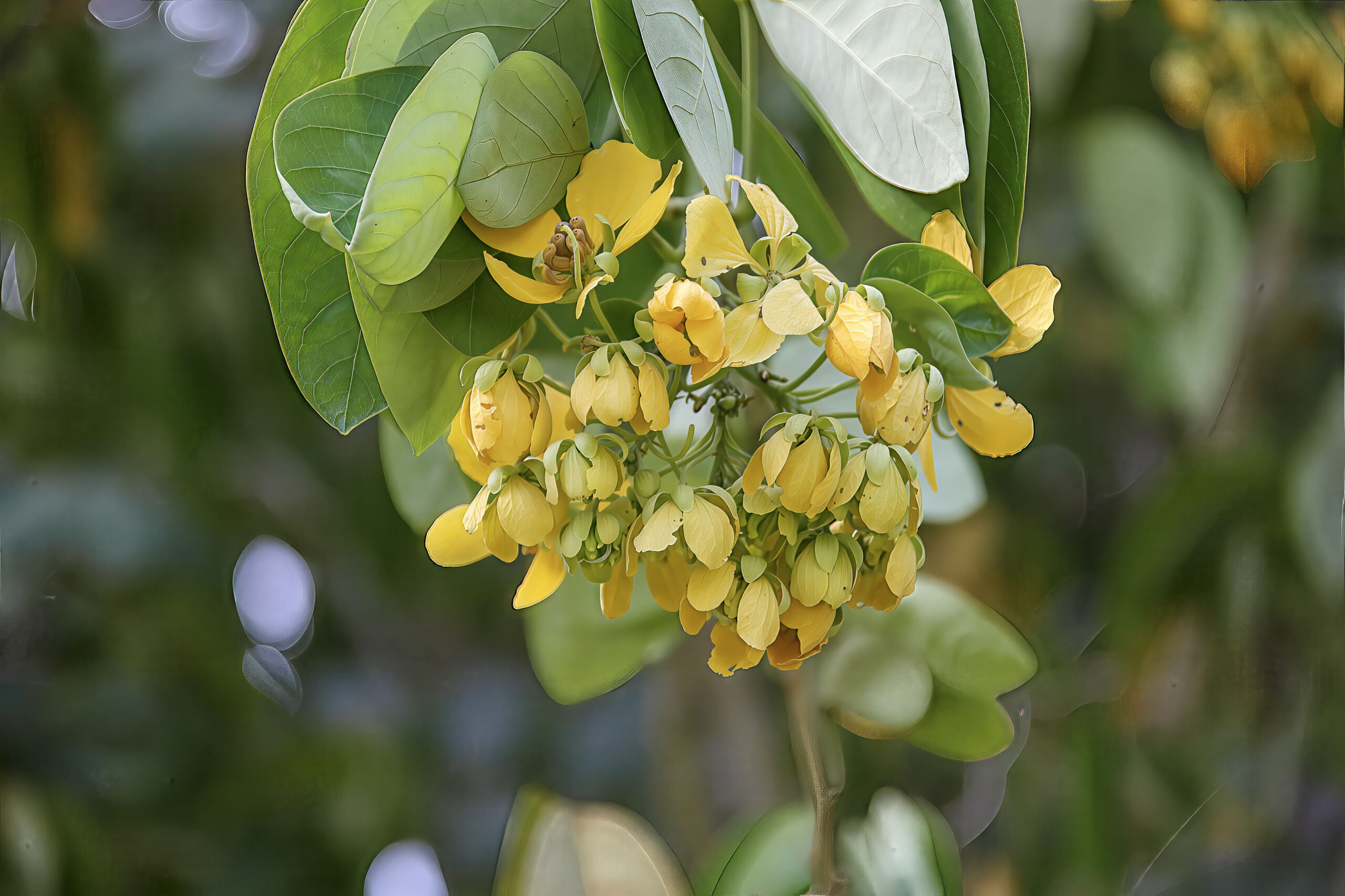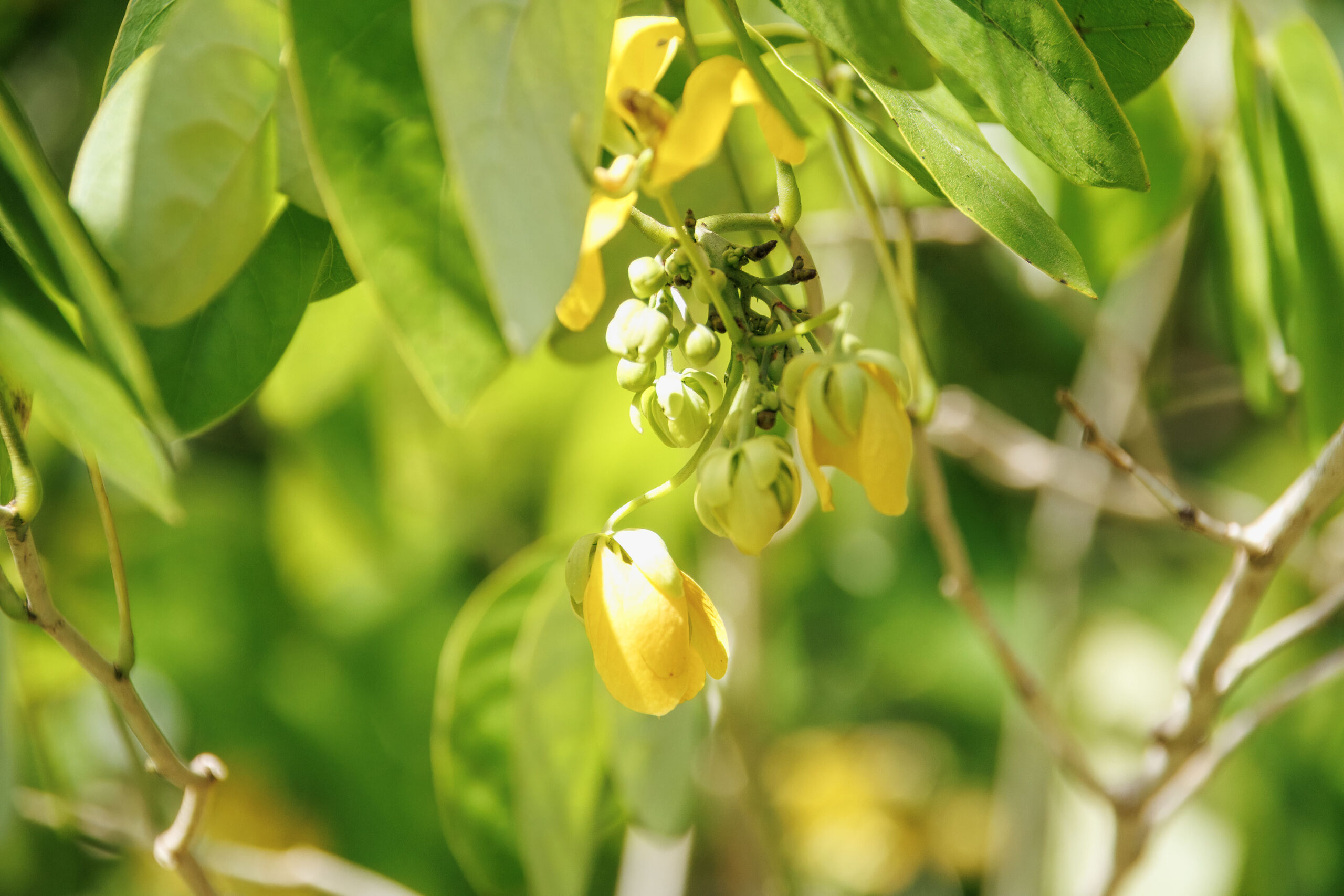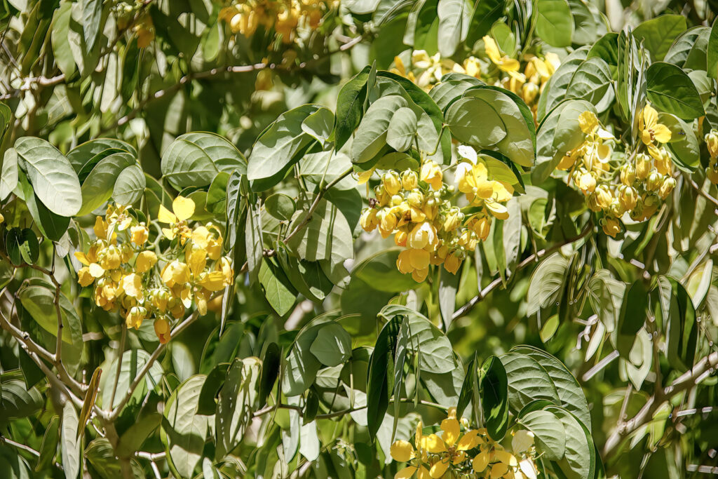 - Inflorescence: Bright yellow flowers borne in terminal or axillary racemes or clusters
