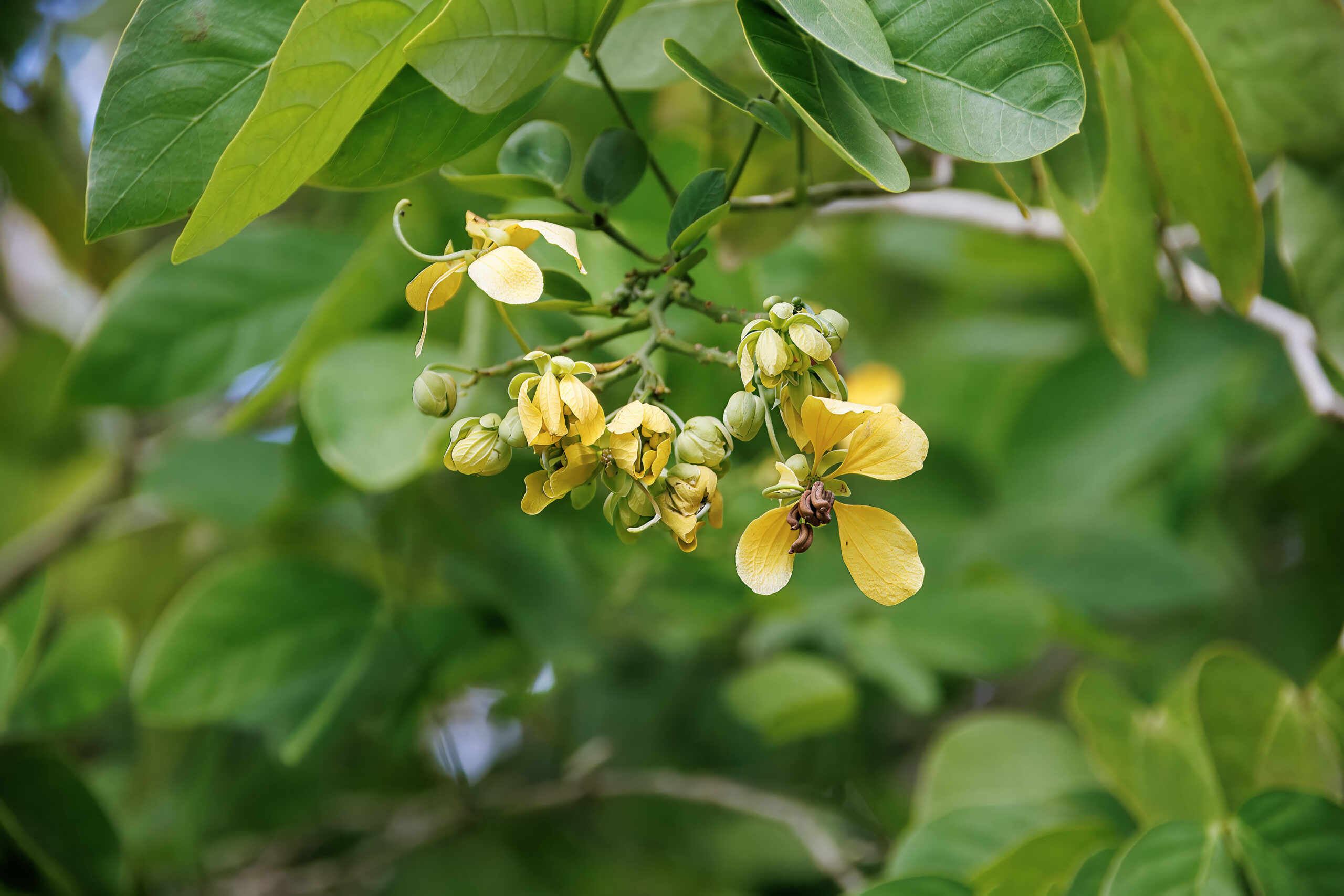 - Phenological Indicator: Developing or mature brown pods visible along branches, sometimes twisted or curled