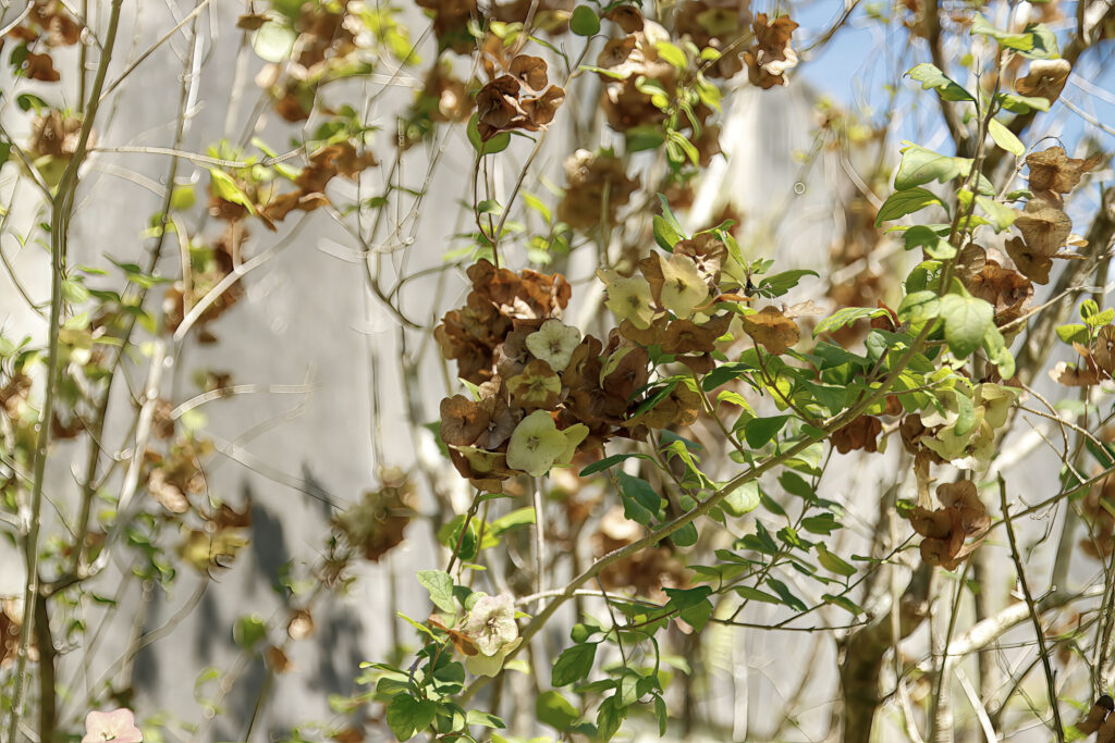 - Flower Characteristics: Purple to bluish-lavender bell-shaped flowers with large, papery calyces shaped like little hats or parasols; flowers emerge in clusters at branch ends