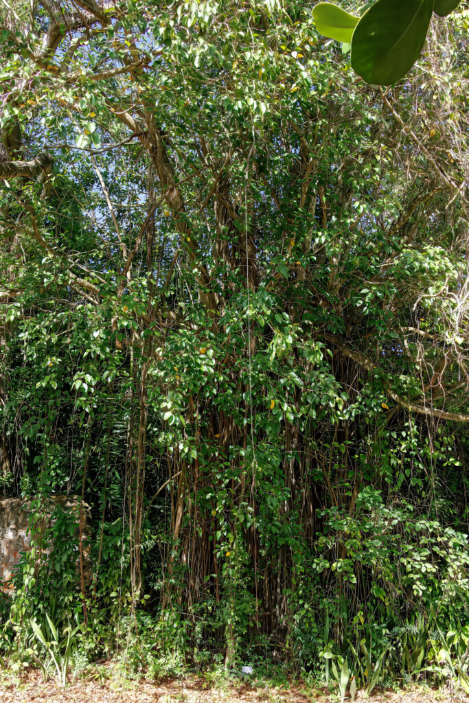 According to a 2004 forest inventory of the U.S. Virgin Islands, Ficus citrifolia is listed under common names such as “wild fig,” “strangler fig,” “shortleaf fig,” and notably “spotted leaf fig” USFS Research & Development.