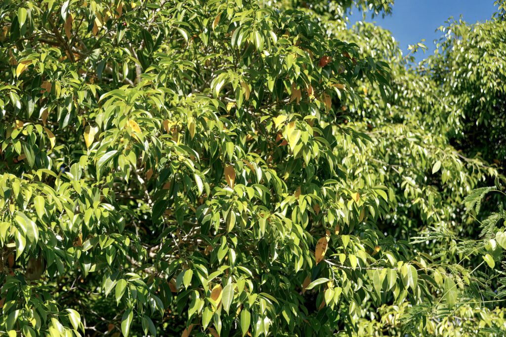 Ficus aurea is typically evergreen in tropical climates like St. Croix, but may be briefly semi-deciduous in drought or stress conditions.
