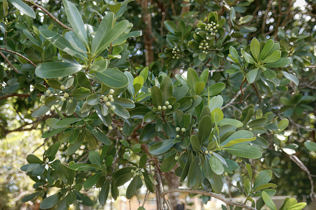 Wild Cinnamon is evergreen, maintaining its shiny, leathery, dark green leaves throughout the year.